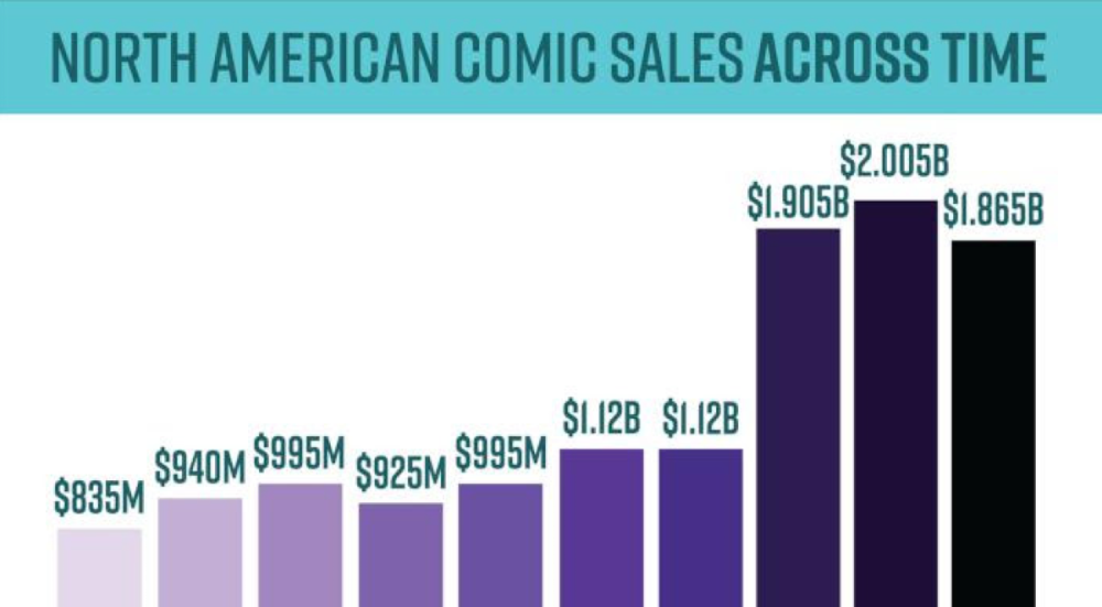 Overall comics and graphic novel sales were down 7% in North America, reports ICv2’s Milton Griepp.